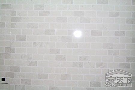 整体铺装效果:身材大了,对铺贴的要求就相应的提高。近距离观察,编辑发现样板间里的铺设并没有达到理想的效果,虽然两块墙砖拼接的接缝不大,但是明显在铺贴时没做到水平,从而导致相邻两块砖凹凸不平。从整体效果上看,过于明显的铺贴接缝在一定程度上破坏了瓷砖花色的连续性,使得花色过渡生硬不自然,严重影响了整体美感。